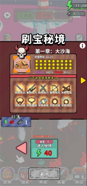 是获取武器的重要途径,每一章结束后都会开启对应的秘境章节,玩家需要先进入打成功一关后方可利用扫荡券扫荡,机制并不是推图那种好几波,而是开始前给你很多金币,你需要自己升级基地选择对应的契约和塔的等级,撑过一波的猛烈攻势!全篇推图拿到的星星越多,也会影响秘境的掉落稀有度和数量!所以加油吧!
