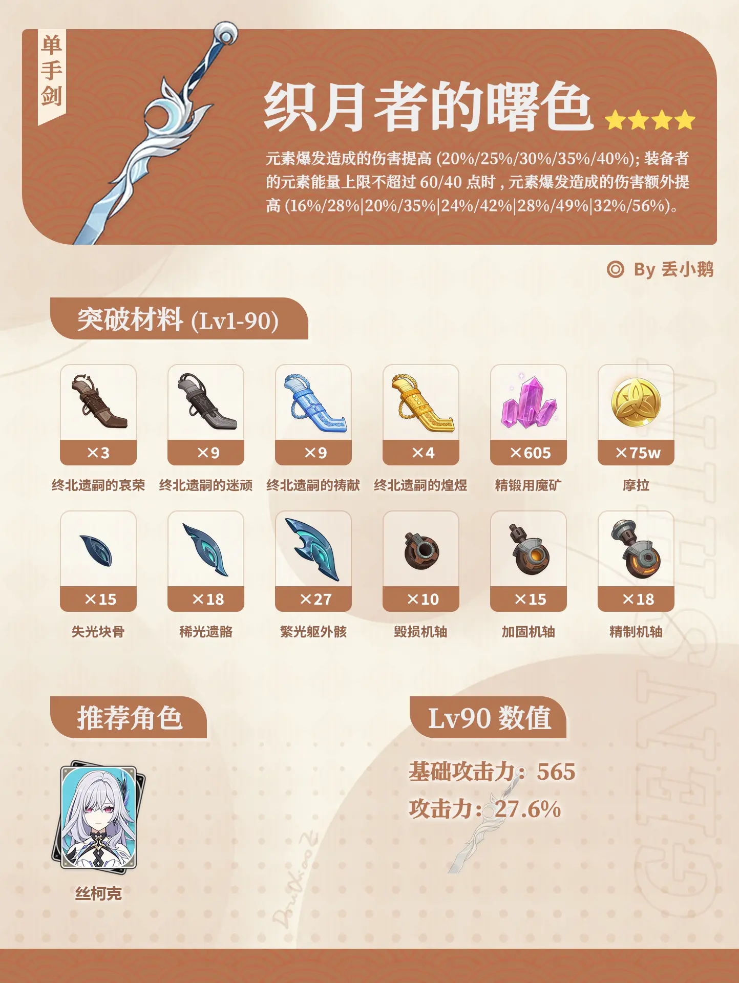 原神织月者的曙色武器介绍 织月者的曙色突破材料一览