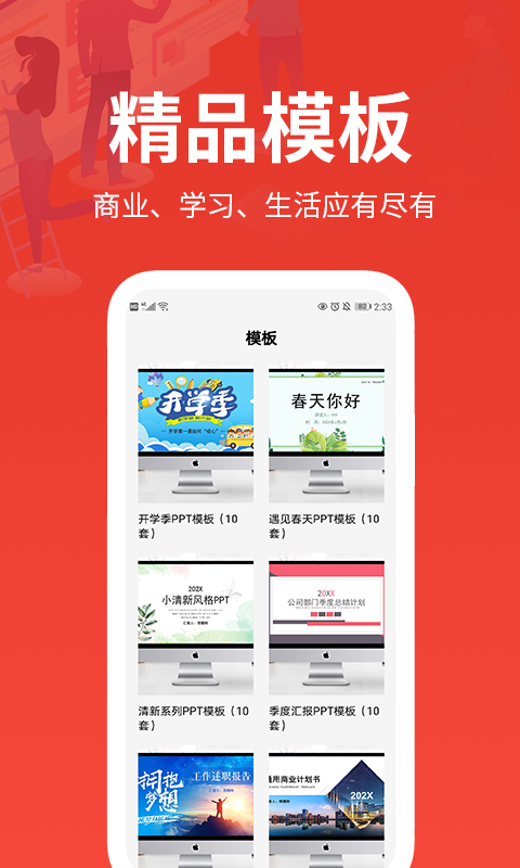 这是一款能让制作变得轻而易举的软件,精准覆盖了各行各业的需求,不管你是从事什么行业,在这里都能找到合适的模板。而且,它有个很贴心的功能,点击模板就能预览效果,这样就能避免下载后发现模板和自己预期不符的尴尬情况,节省了不少时间和精力。就算你在手机、平板等不同设备上使用,也不用担心适配问题,它能完美适应各种设备的屏幕