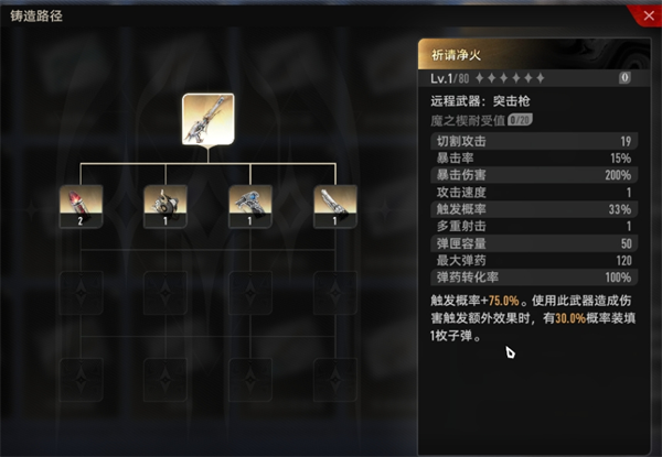 (其中新手引导会让我们制作一把祈请净火,这把只会消耗紫色材料,后续想要重复铸造均需要消耗金色素材)