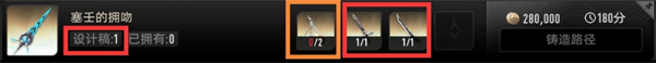 游戏内除了直接赠送的武器外,其余武器均需要获得设计稿后锻造获取,所有武器的锻造素材均相同
