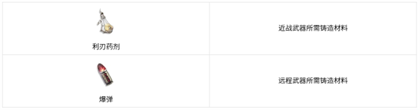 如上文提过,除了武器的专属材料外,剩下的通用材料里近战武器必是利刃药剂,远程武器必是爆弹。