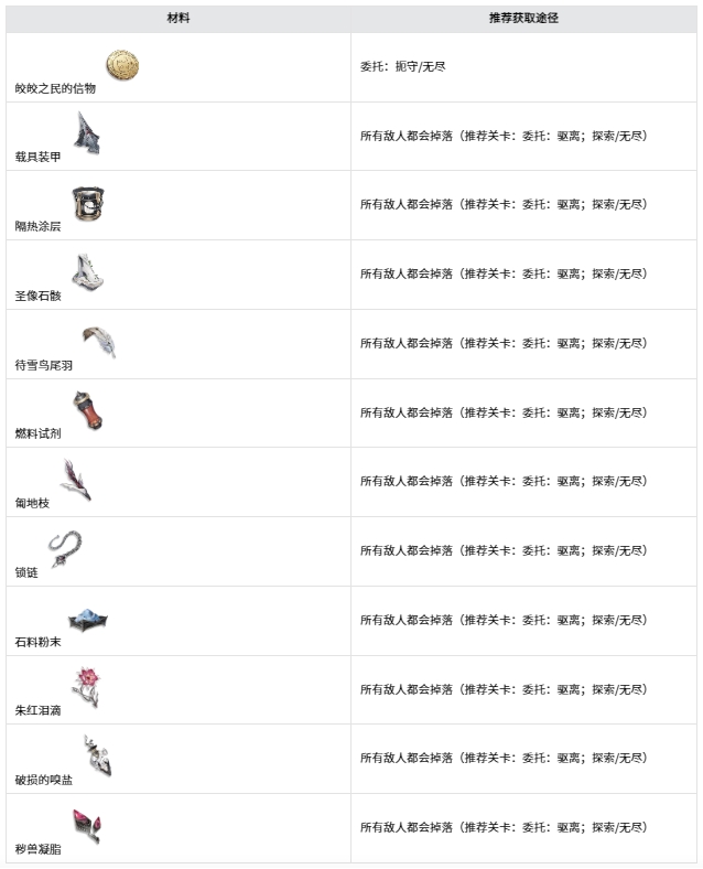 下述这些材料同样也是角色技能升级所需的材料,在整个流程中会不断地获取并消耗。