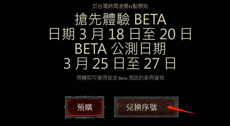 1、点击进入兑换网址:https://diablo4.b*lizzar**d.com/zh-tw/beta2、点击下方的兑换序号。