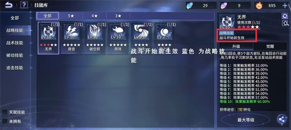 2、相同种类的技能所造成的相同技能效果无法叠加,例如2个战略技能的造成伤害增加效果,只取最大值生效