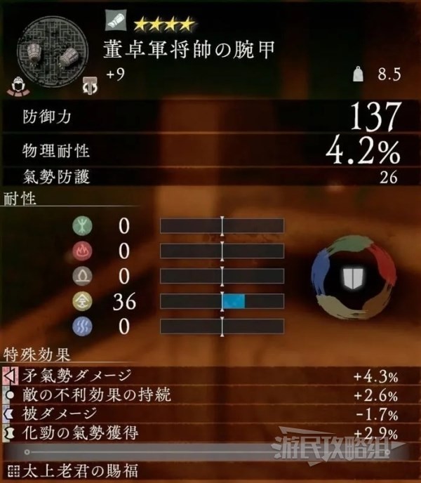 此宝箱开启必定获得四星手臂防具「董卓军将帅臂甲」,手臂防具比较占位置容易与套装抢效果,会间接减少-1词条的作用。除此之外,「董卓军将帅臂甲」的第一个词条固定为「矛气势伤害+」,如果不使用同类型武器的话就是无用词条。当然此部位如果先刷出来「套装效果所需装备数-1」的话建议先过渡用,等刷出远程武器后再替换,无论如何也是目前一个比较好刷的位置。