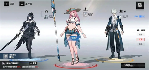 ④冰队:曲·启明(队长,蓝位), 艾拉·万华(首发,红位),万事·明晰梦(黄位)