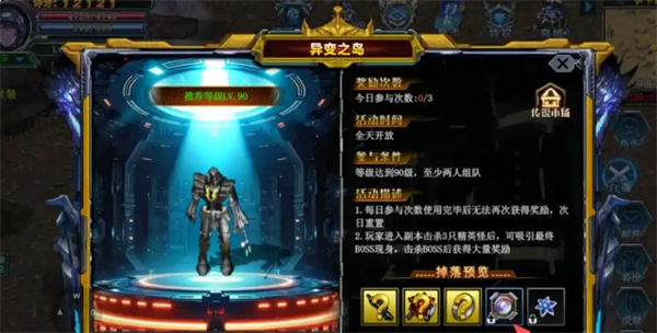 在异变之岛中需要先击杀三个精英怪才能引出领主boos,在领主boos血量来到50%时会幻化三个分身同时进入无敌状态只有将三个分身全部击杀才能继续对领主boos造成伤害,副本结束会获取积分和金装以及概率获得雪魂。