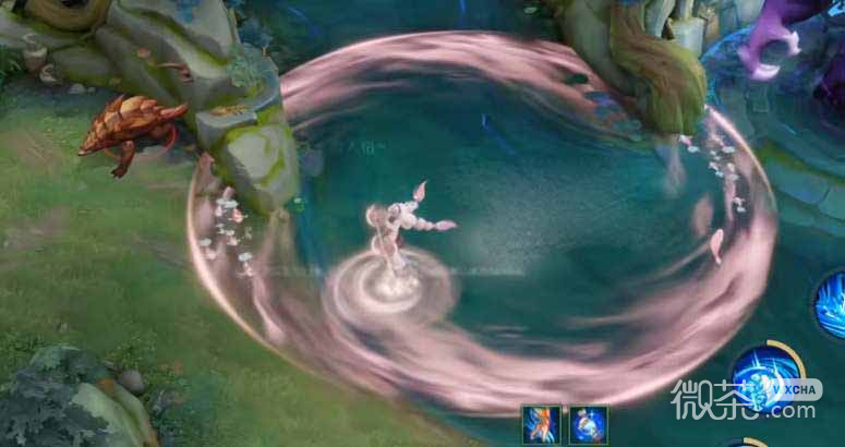 4、大招的技能特效如下图所示,粉色的漩涡边缘还有游动的鱼群;