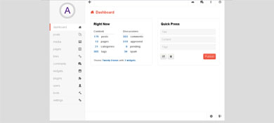 复制代码代码如下:body { background-color: rgb(220,220,220); padding: 0; margin: 0; font-size: 16px; font-family: sans-serif;}.clearfix:after { content: ""; display: block; height: 0; width: 0; clear: both;}.admin-panel { width: 990px; margin: 50px auto;}/*slidebar侧边栏*/.slidebar { width: 20%; min-height: 690px; float: left; border-right: 1px solid rgb(235,235,235); background-color: rgb(247,247,247);}.slidebar .logo { height: 145px; border-bottom: 1px solid rgb(235,235,235);}.slidebar ul { padding: 0; margin:0;}.slidebar li { list-style-type: none; margin: 0; position: relative;}.slidebar li:before { content: ""; font-family: 'icomoon'; speak: none; font-weight: normal; font-variant: normal; text-transform: none; position: absolute; display: block; line-height: 40px; color: rgb(102,102,102); right: 20px; -webkit-font-smoothing: antialiased;}/*插入icon图标*/.slidebar li:nth-child(1):before {content: "63";}.slidebar li:nth-child(2):before {content: "64";}.slidebar li:nth-child(3):before {content: "62";}.slidebar li:nth-child(4):before {content: "65";}.slidebar li:nth-child(5):before {content: "74";}.slidebar li:nth-child(6):before {content: "66";}.slidebar li:nth-child(7):before {content: "67";}.slidebar li:nth-child(8):before {content: "68";}.slidebar li:nth-child(9):before {content: "69";}.slidebar li:nth-child(10):before {content: "6a";}.slidebar li:nth-child(11):before {content: "75";}.slidebar ul a { color: rgb(140,140,140); text-decoration: none; font:16px/40px helvetica,verdana,sans-serif; box-sizing:border-box; border-bottom: 1px solid rgb(235,235,235); display: block; box-shadow:inset 0 1px 0 rgb(255,255,255); text-indent: 20px; text-transform: capitalize;}.slidebar li:hover a { background-color: rgb(255,255,255); box-shadow: 1px 0 0 rgb(255,255,255),inset 5px 0 0 -1px rgb(234,83,63);}/*main*/.main { float: left; width: 79%; height: 690px; background-color: rgb(255,255,255); position: relative; font-family: helvetica,verdana,sans-serif;}.main .topbar { border-bottom: 1px solid rgb(235,235,235); margin: 0; padding: 0;}/*topbar顶部按钮栏*/.topbar li { float: right; list-style: none;}.topbar li:first-child {float: left;}.topbar a { font-family: 'icomoon'; display: block; line-height: 50px; width: 50px; text-align: center; text-decoration: none; color: rgb(102,102,102); border-left: 1px solid rgb(235,235,235);}.topbar a:hover { background-color: rgb(247,247,247);}.topbar li:first-child a { border: none; border-right: 1px solid rgb(235,235,235);}/*mainContent*/.mainContent h4 { line-height: 1; font-size: 18px; margin: 1.3em 0 1em; margin-left: 17px;}.mainContent>div { position: absolute; opacity: 0; -webkit-transition:opacity 200ms linear; -moz-transition:opacity 200ms linear; -ms-transition:opacity 200ms linear; transition:opacity 200ms linear;}/*通过opacity来切换不同的选项卡*/.mainContent>div:target { opacity: 1;}.mainContent h2 { margin:1em 30px; color: rgb(234,83,63); font-size: 20px;}.mainContent h2:before { font-family: 'icomoon'; content: attr(data-icon); font-weight: normal; font-variant: normal; text-transform: none; line-height: 1; margin-right: 10px; -webkit-font-smoothing: antialiased;}.mainContent div:nth-child(1) h2:before {content: "63";}.mainContent div:nth-child(2) h2:before {content: "64";}.mainContent div:nth-child(3) h2:before {content: "62";}.mainContent div:nth-child(4) h2:before {content: "65";}.mainContent div:nth-child(5) h2:before {content: "74";}.mainContent div:nth-child(6) h2:before {content: "66";}.mainContent div:nth-child(7) h2:before {content: "67";}.mainContent div:nth-child(8) h2:before {content: "68";}.mainContent div:nth-child(9) h2:before {content: "69";}.mainContent div:nth-child(10) h2:before {content: "6a";}.mainContent div:nth-child(11) h2:before {content: "75";}#dashboard>div { border: 1px solid rgb(235,235,235); margin-left: 30px; float: left; border-radius: 5px; min-width: 345px; height: 262px; display: inline-block;}.monitor ul { float: left; padding: 0; margin: 0 31px 0 17px;}.monitor li { list-style:none; font: 600 14px/28px helvetica,verdana,sans-serif; color: rgb(102,102,102); text-transform: capitalize;}.monitor li a { color: rgb(102,102,102); text-transform: capitalize; text-decoration: none;}.monitor li:first-child { border-bottom: 1px dotted rgb(153,153,153);}.discussions .comments {color: rgb(27,106,173);}.discussions .approved {color: rgb(105,174,48);}.discussions .pending {color: rgb(246,129,15);}.discussions .spam {color: rgb(243,47,47);}.monitor .count { color: rgb(27,106,173); text-align: right; font-weight: 600; margin-right: 15px; min-width: 25px; display: inline-block;}.monitor p { color: rgb(128,128,128); margin: 28px 0 18px 17px; display: block; font-weight: 600; font-size: 12px;}.monitor p a { text-decoration: none; color:rgb(27,106,173);}.quick-press form { margin:0 20px 0 13px;}.quick-press input[type="text"] { display: block; width: 100%; -moz-box-sizing:border-box; box-sizing:border-box; height: 35px; line-height: 15px; padding: 10px 0; margin:0 0 7px 0; background-color: rgb(246,246,246); outline: none; border: none; text-indent: 10px;}/*统一各浏览器下placeholder内的字体样式*/.quick-press input[type="text"]::-webkit-input-placeholder {font-size: 14px;}.quick-press input[type="text"]:-moz-input-placeholder {font-size: 14px;}.quick-press input[type="text"]::-moz-input-placeholder {font-size: 14px;}.quick-press input[type="text"]:-ms-input-placeholder {font-size: 14px;}.quick-press button { margin-top: 13px; border-radius: 5px; text-align: center; line-height: 30px; padding: 0;}.quick-press .save, .quick-press .delet { font-family: 'icomoon'; width: 37px; background: -webkit-linear-gradient(top,rgb(246,246,240),rgb(232,232,232)); background: -moz-linear-gradient(top,rgb(246,246,240),rgb(232,232,232)); background: -ms-linear-gradient(top,rgb(246,246,240),rgb(232,232,232)); background: linear-gradient(top,rgb(246,246,240),rgb(232,232,232)); border: 1px solid rgb(229,229,229);