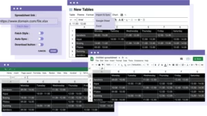 每个表格还可以使用 Google 表格导入和导出工具。节省大量时间,导入您的 Google 表格,创建布局并发布。导出按钮也可用于前端的客户。