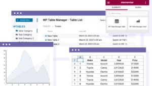 唯一提供与 Elementor 页面构建器完全集成的表格编辑器。有两个专用小部件可用:加载任何表格内容的表格内容小部件和表格图表小部件。