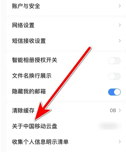 第二步:点击【关于中国移动云盘】选项。