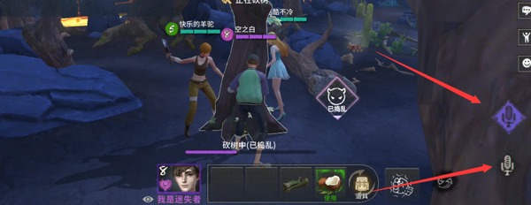 迷失者阵容的界面右侧有两个麦克风图标,没有颜色的图标是公共语音频道,点击后可以和所有玩家说话,紫色的麦克风图标为迷失者阵容内部的语音图标,点击后仅能和迷失者阵容的玩家交流。