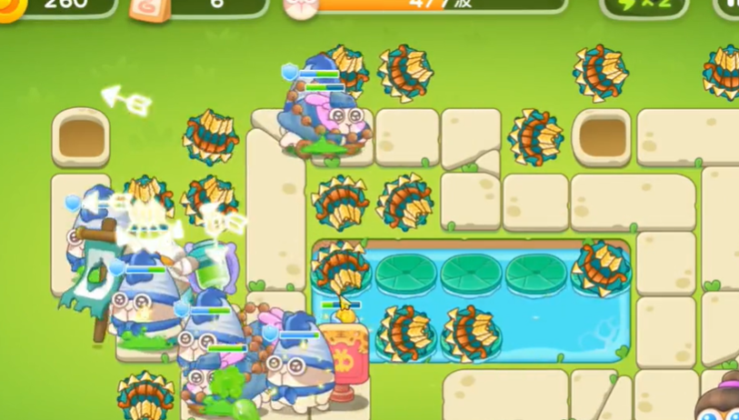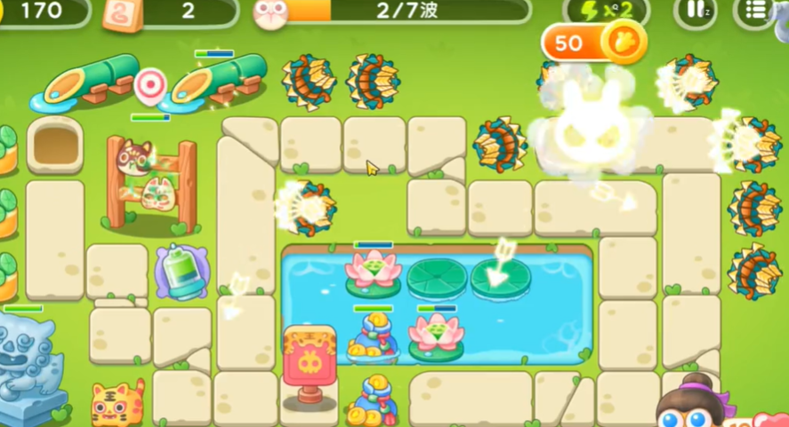 5、将池塘中间的荷叶全部放满满级弓箭。