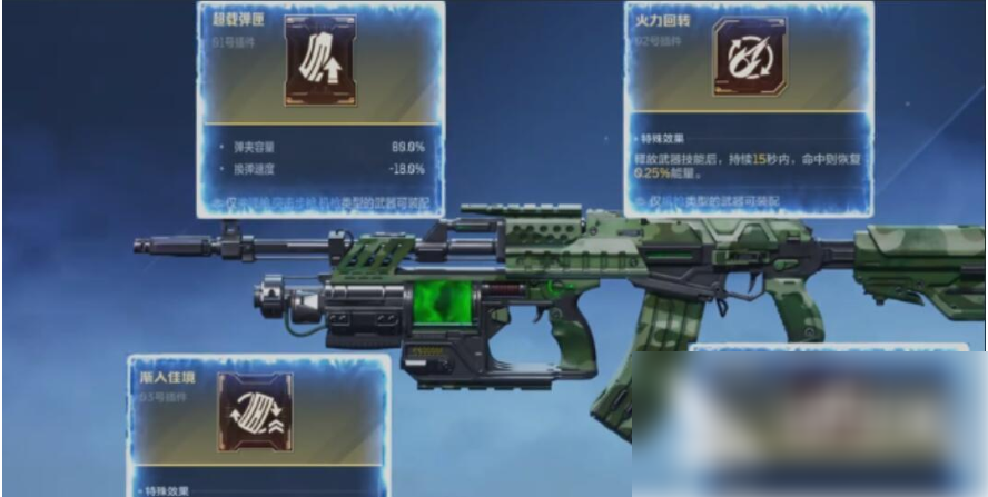 玩家如果直接使用了3号位的插件,那么在使用的过程当中,玩家将会慢慢的进入佳境的状态,因为它持续开火三秒之后就能够实现协商的作用,并且还能够额外增加30%的伤害,要是玩家在这个时候直接搭配了苔色风暴,玩家此时不仅能够拥有不换弹的特性,而且还能够让输出值在大幅度的增加。