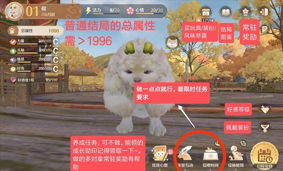 在养的过程中,有时间可以专门做一下【茸茸心愿】,可获得【成长勋印】,没时间的话也可以不做~领取奖励就好。