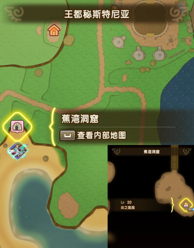 ①过去→王都秘斯特尼亚→蕉湾洞窟,地图下侧
