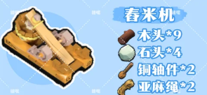 3、舂米机:铜轴件*2 亚麻绳*2、石头*4、木头*9
