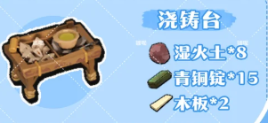 9、浇铸台:木板*2、湿火土*8、青铜锭*15