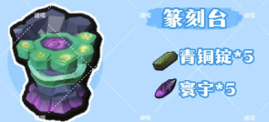 10、篆刻台:青铜锭*5、寰宇*5