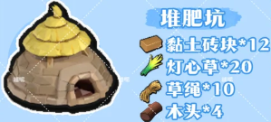11、堆肥坑:木头*4 草绳*10 黏土砖块*12 灯芯草*20