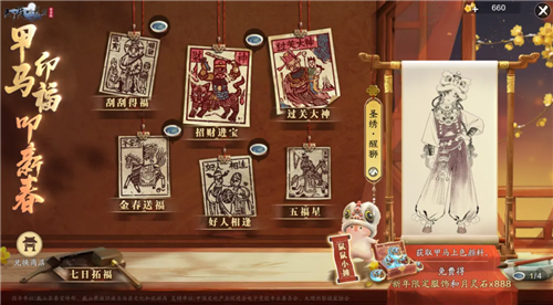 轻松一点,好礼天天领!明日起,少侠可前往活动页面参与【七日拓福】,从认识甄选梨木良材开始,逐步了解甲马纸的制作工艺,更能收获月灵石、新春限定外显、天衣礼券等丰富奖励。
