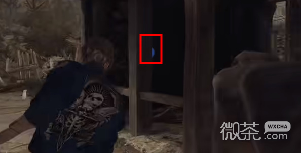 6、在牛棚后面的房间的墙壁夹角位置,我们可以找到第四处蓝色徽章。
