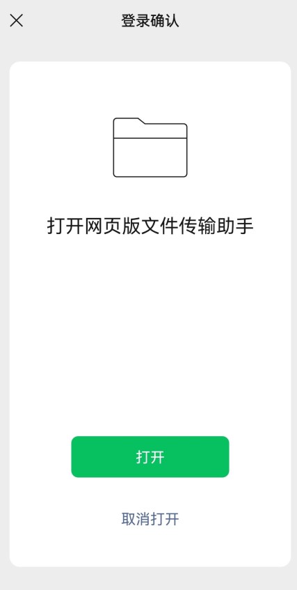 第二步:手机端收到登录提示后,点击【打开】按钮完成授权,此时电脑端将自动跳转至文件传输界面。