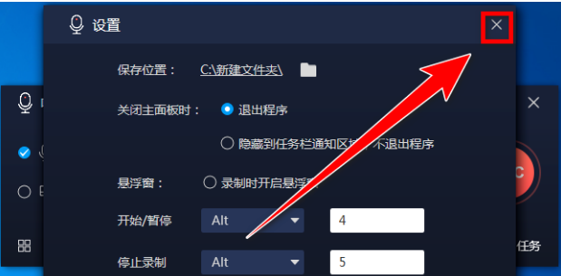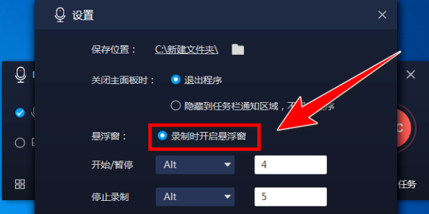 3、点击“关闭”按钮,便可在录音时不显示悬浮窗。