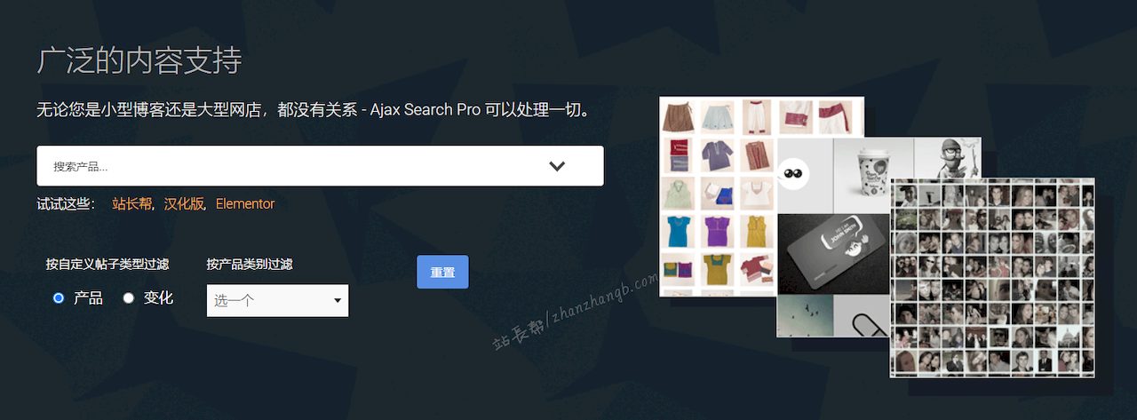 搜索支持帖子、页面、产品和任何自定义帖子类型。还支持搜索类别、标签、分类项目、用户、附件和 BuddyPress 内容。