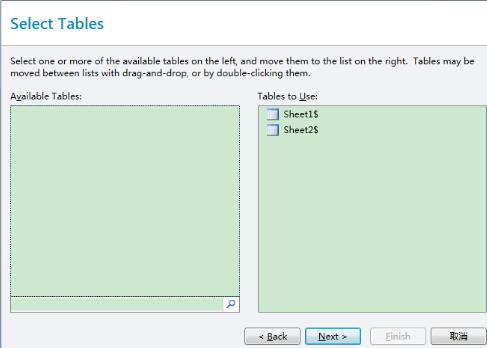 - 本文以含有两个工作表的Excel为例,双击添加这两个工作表至右侧所需表格栏中,单击下一步。