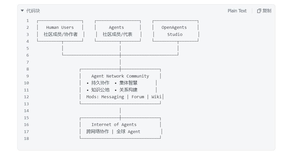而在OpenAgents里,用一条命令就能把不同智能体能接到同一平台,让它们一个网络里交流讨论、协同合作,发挥各自优势。