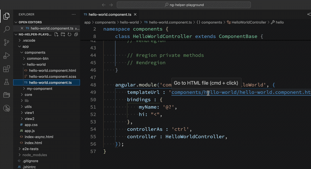 - 跳转到定义:Ctrl+Click 直接跳到 TypeScript 中对应的属性或方法定义