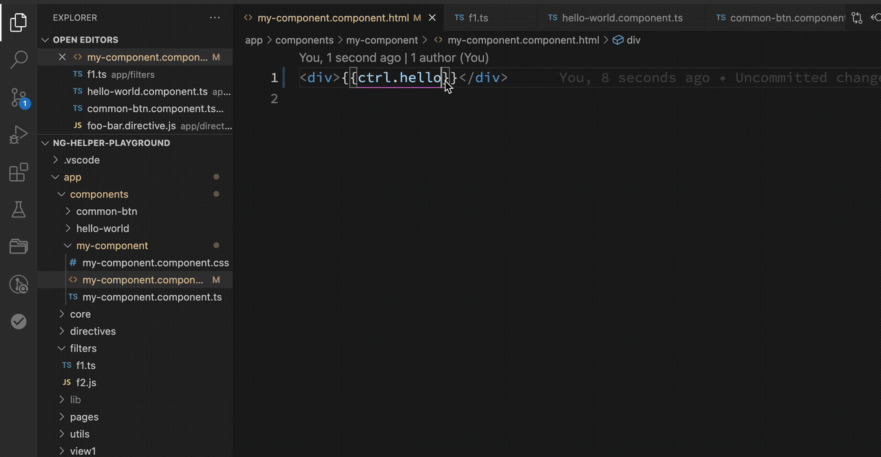 最初的目标很简单:在 HTML 模板的 {{ ctrl.userName }} 上提供自动补全和类型提示。表达式本身就是合法的 JS 属性访问,不需要特殊解析------但关键问题是,TypeScript 的类型信息怎么拿到?