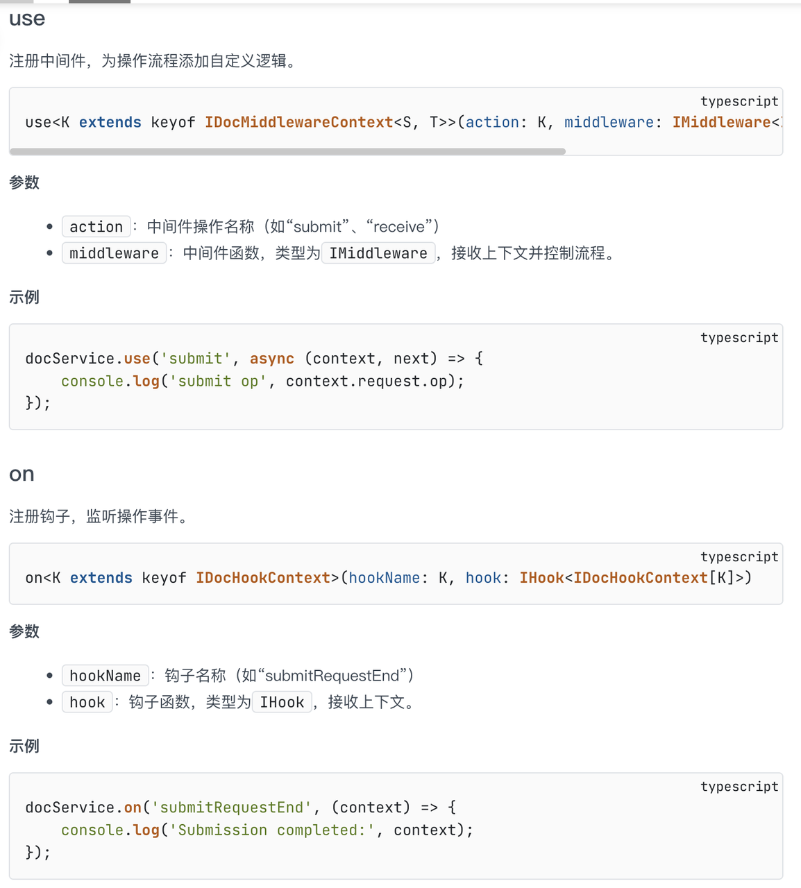 - 多层次的定制化空间,从前端页面、冲突处理到用户鉴权,数据存储等各个环节,均可以通过中间件的方式二开处理,从而开发满足个性化需求的系统。