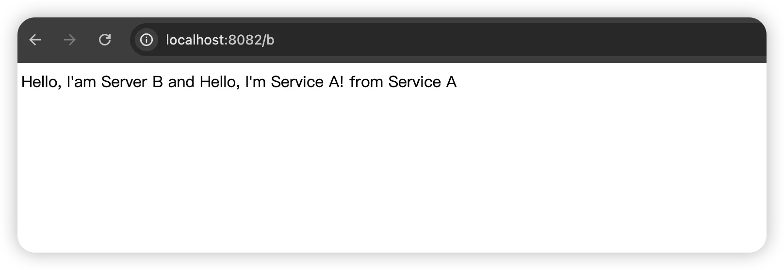 我们编写一个简单的BService服务程序,只要访问localhost:8082/b就会调用AService并返回相关信息。