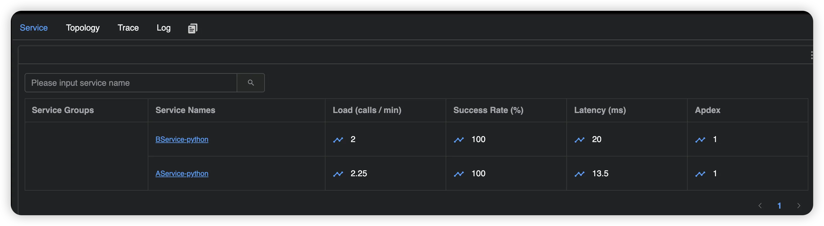 export SW_AGENT_COLLECTOR_BACKEND_SERVICES=localhost:11800export SW_AGENT_NAME=BService-python一切准备妥当后,运行我们的服务程序。