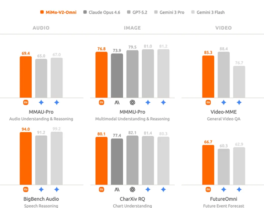 MiMo-V2-Omni专注于多模态交互场景,创新性地构建了融合文本、视觉和语音的全模态基座,实现感知与行动的深度整合。该模型兼容各类Agent框架,现已开放API服务,支持256K上下文长度,定价为输入0.4美元/百万tokens,输出2美元/百万tokens。