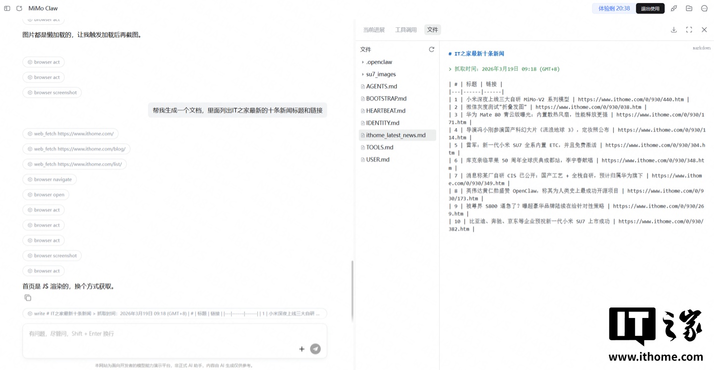 在测试阶段,每位用户可获得30分钟的免费体验时长。该工具采用对话式交互界面,配备专业文件管理系统。测试表明其能够实现网页图片抓取、新闻内容采集等功能,所有数据将在会话结束后自动清除。