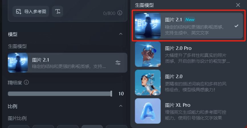 静态封面制作与常规AI绘图流程相似,融入新年元素即可打造特色效果。打开绘图工具选择2.1版本模型,该版本支持祝福语生成功能。