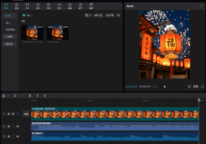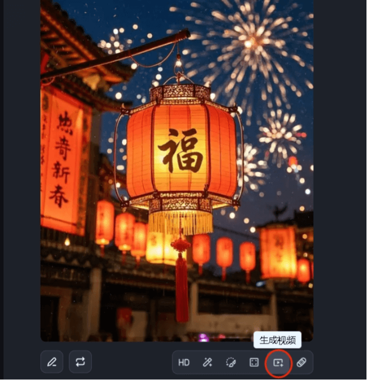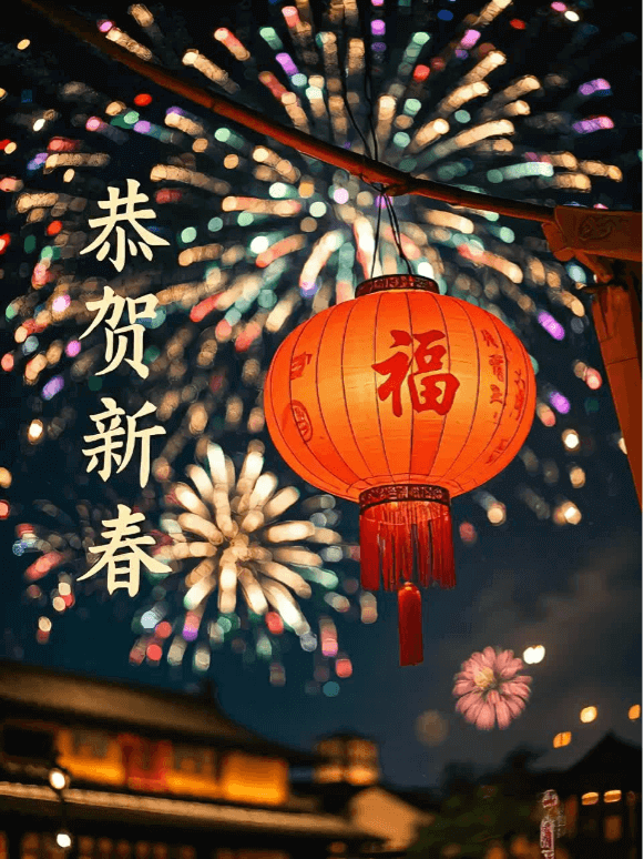 示例1:恭贺新春主题,包含传统灯笼、烟花等元素,32K高清画质