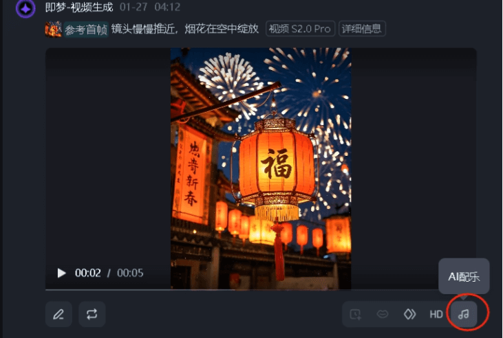 在静态图基础上选择视频生成功能,使用S2.0 Pro模型添加动态效果。