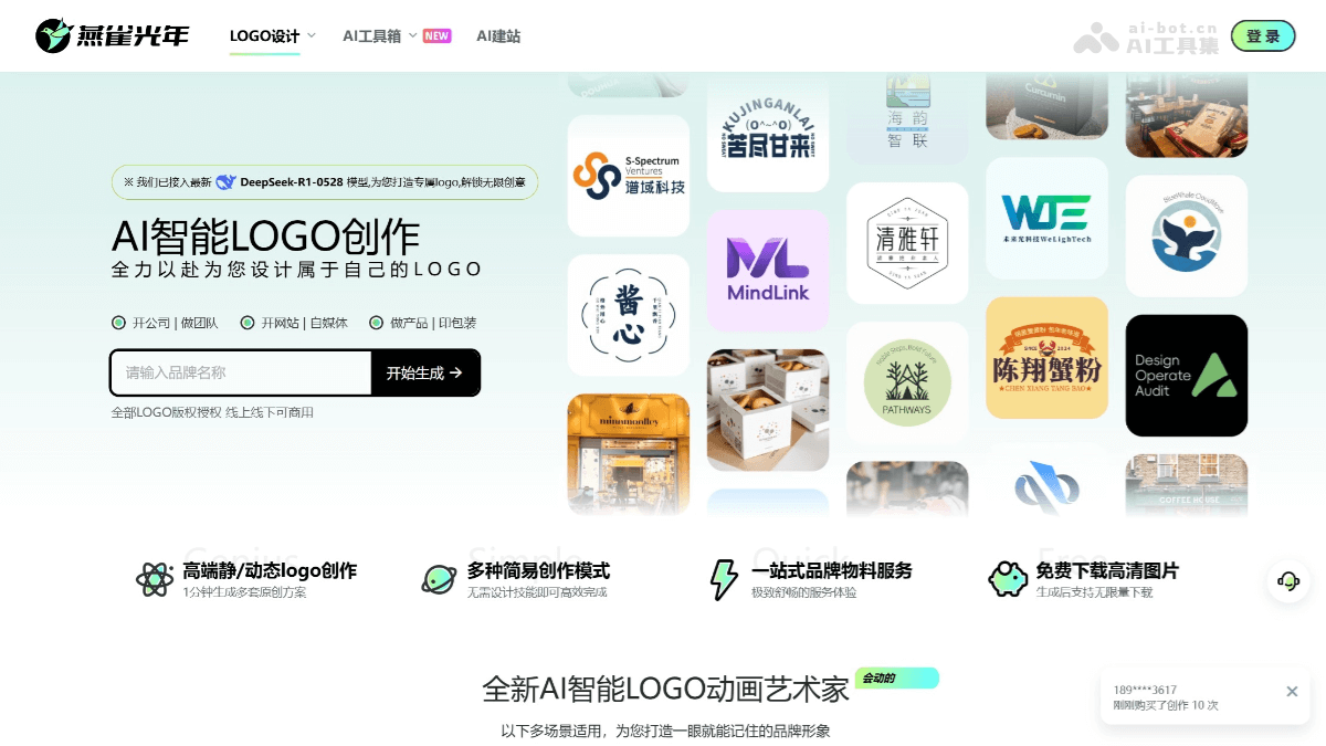 燕雀光年专注品牌视觉设计,3分钟内可生成100+原创LOGO方案。提供VI系统设计服务,支持多格式输出。