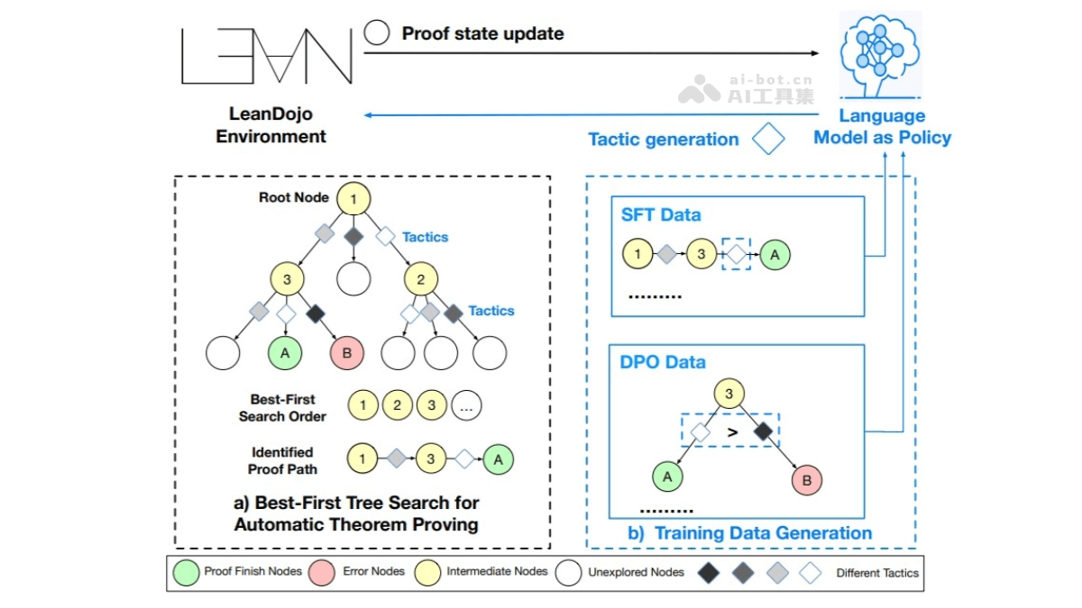 这款由顶尖AI团队研发的自动定理证明系统,创新性地融合了改进的广度优先搜索算法与专家迭代技术。系统采用长度归一化评分机制,通过累积对数概率评估证明路径优先级,显著提升搜索效率。其分布式架构支持大规模并行运算,确保高并发任务的处理能力。