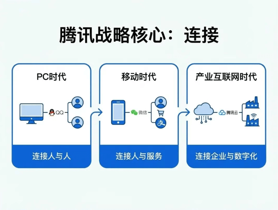 腾讯历来以"连接"为核心战略:PC时代连接人与人,移动时代连接人与服务,产业互联网时代连接企业与数字化。而在AI时代,连接的本质正在发生质变,AI不再仅是管道,而是进化成为连接的中枢神经。
