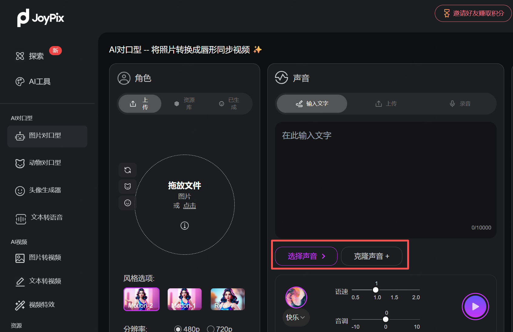 - 选择图片对口型功能