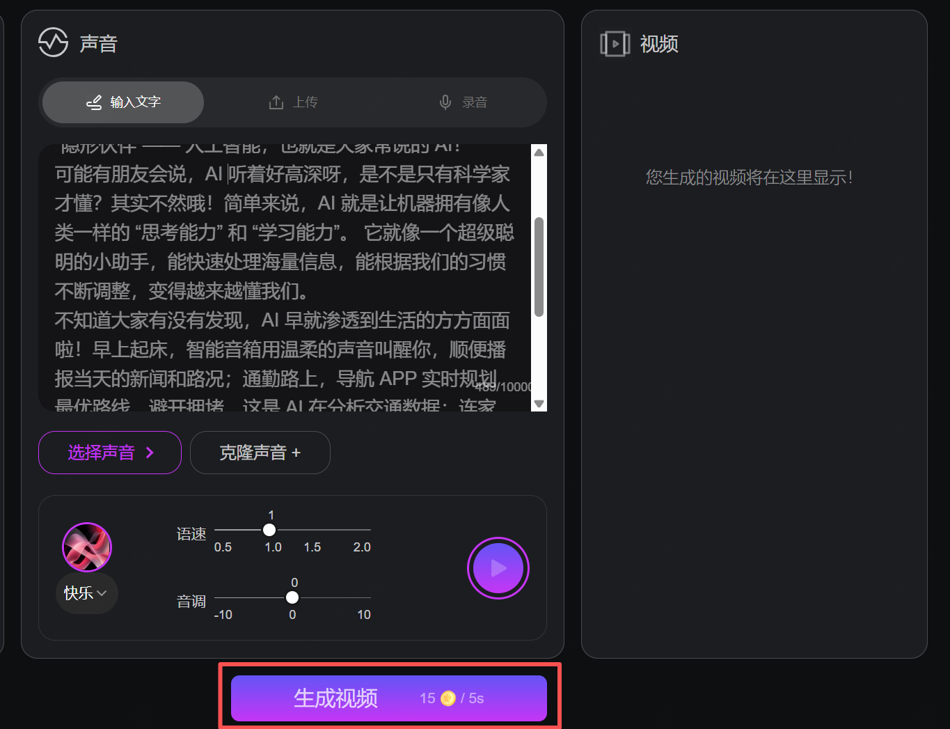 - 生成并预览视频效果