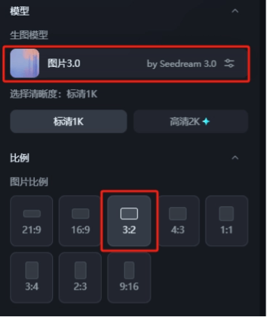 根据这个结构,可以自由调整各要素。若要创作小女孩形象的漫画,可输入:"一幅卡通风格插画,画面中心是一个小女孩,她留着深咖色卷发..."在AI作图中选择最新模型,设置3:2的图片比例。