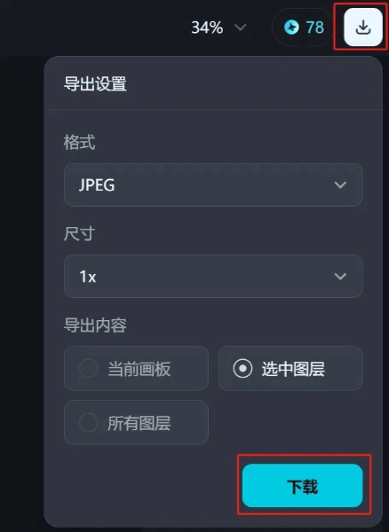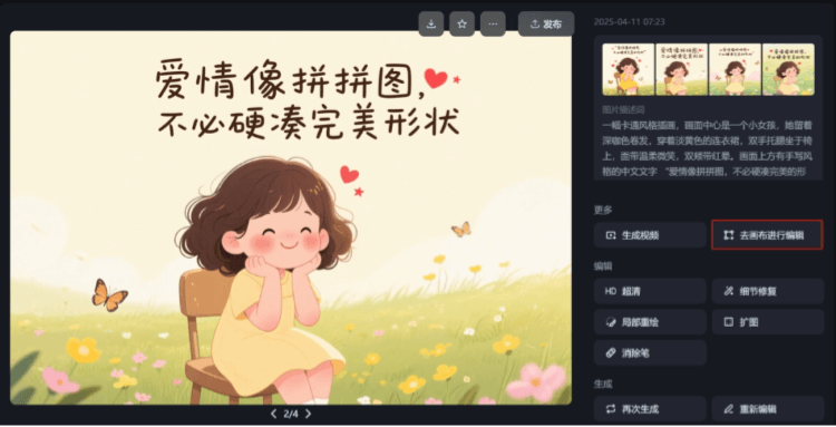 点击立即生成后,挑选最满意的图片进入画布编辑界面,最后下载无水印成品。